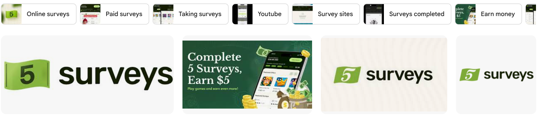 Every five completed surveys unlock a $5 payout. There are no points, tiers, or hidden math — just complete five surveys and cash out.